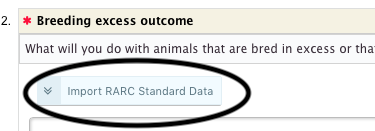 - Click on the "Import RARC Standard Data" or the "Import Previous Protocol Data" button located under the page title.