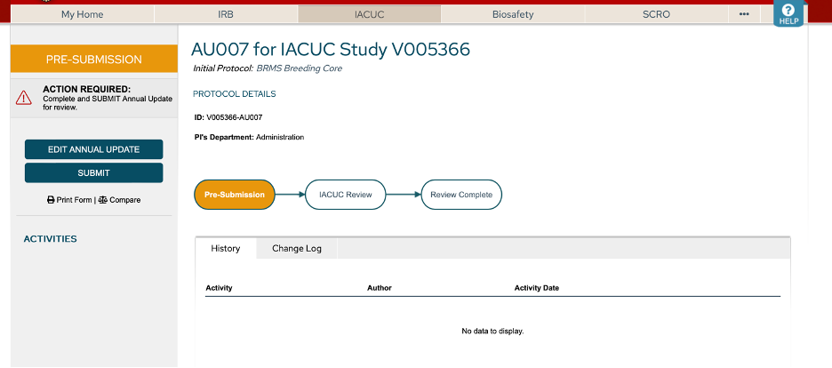 - Your Annual Update will be assigned for review by the IACUC at the next monthly meeting.