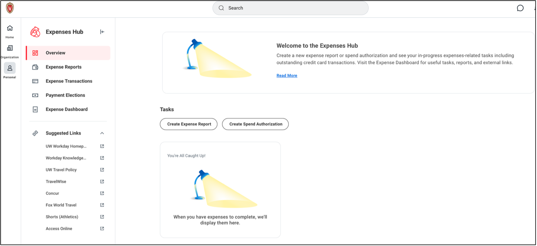 - Go to Workday: https://www.myworkday.com/wisconsin/d/home.htmld